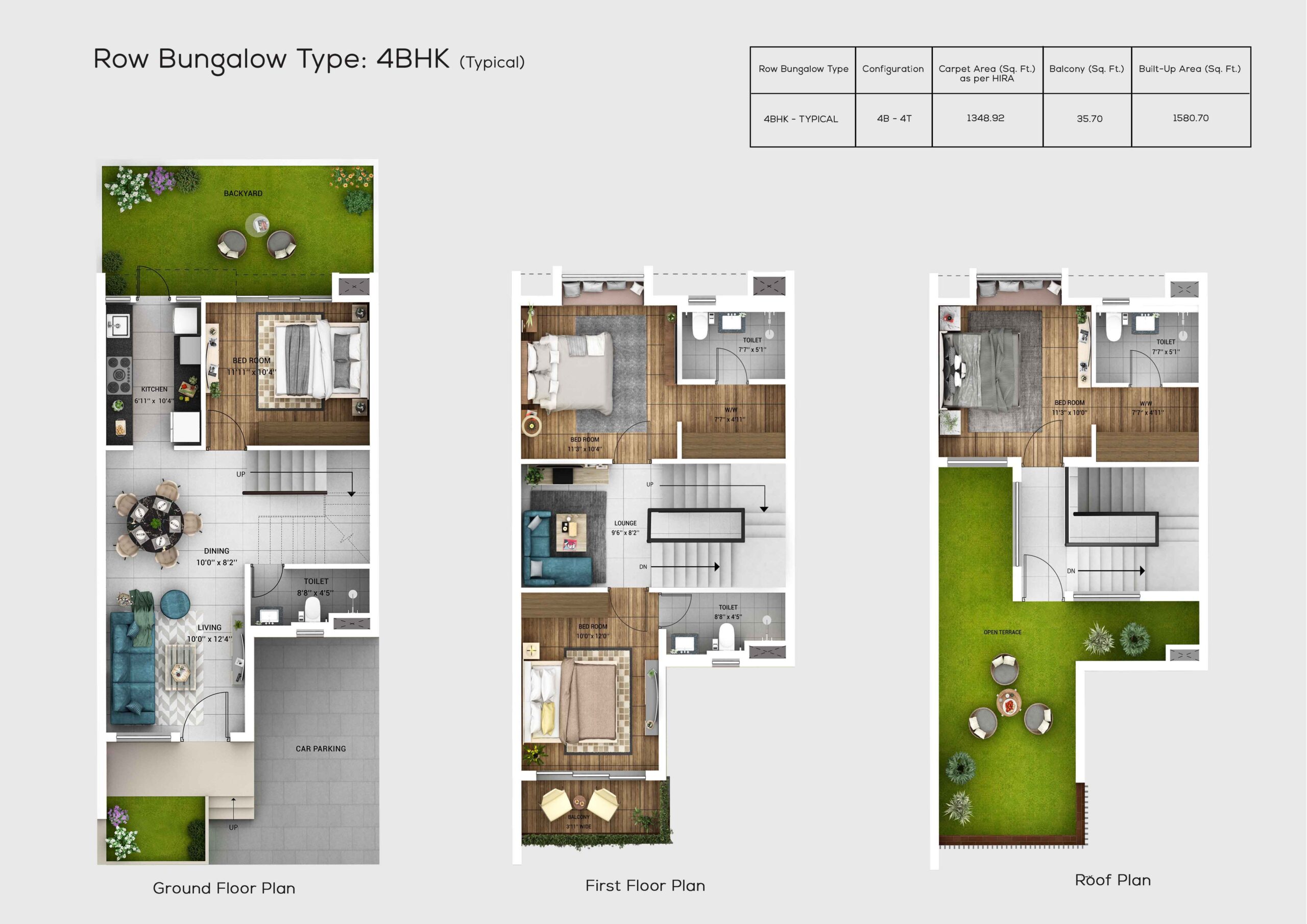 Make every day a dream. Beacause we're introducing all new beautiful G+2 row bungalows amongst the purity of lush nature. Own your well-planned bungalow lifestyle. Each row bungalow in Amantran literally has everything that you have imagined. The ground floor has a living room, dining, kitchen, a room with a garden and car parking. Step up and discover more luxuries as you make your way to the upper levels. Amantran for all. Please come.