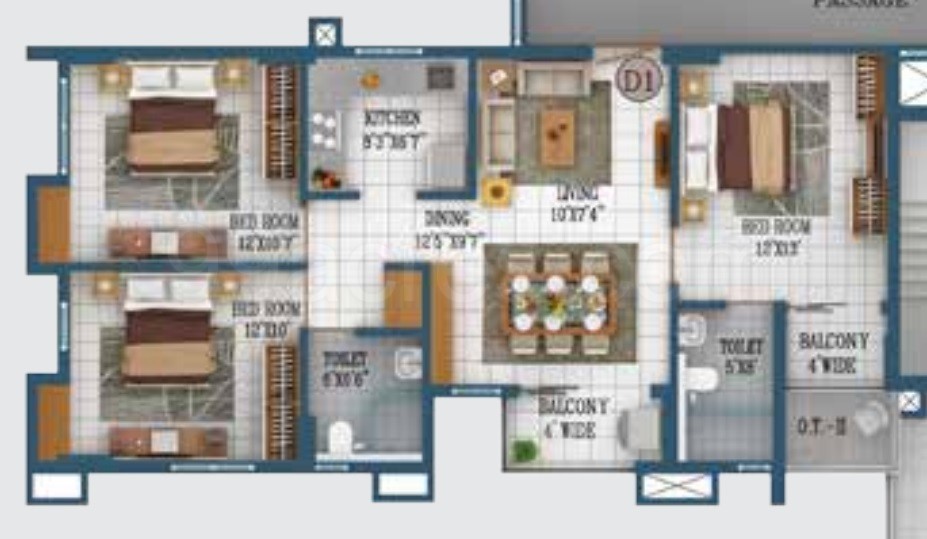 | Floor Plan | 3 | 2 | 1240 sq.ft. | Price On Request |