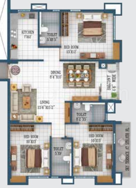 | Floor Plan | 3 | 3 | 1300 sq.ft. | Price On Request |