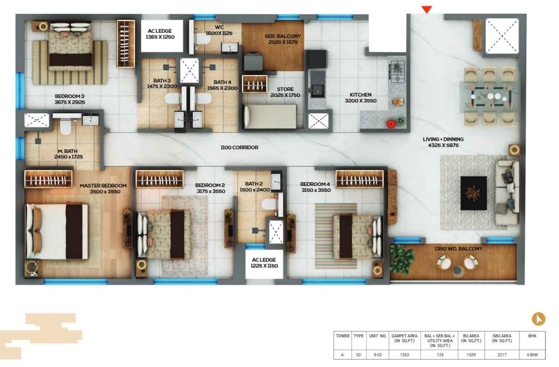| Floor Plan | 4 | 4 | 1398 sq.ft. | Price On Request |
