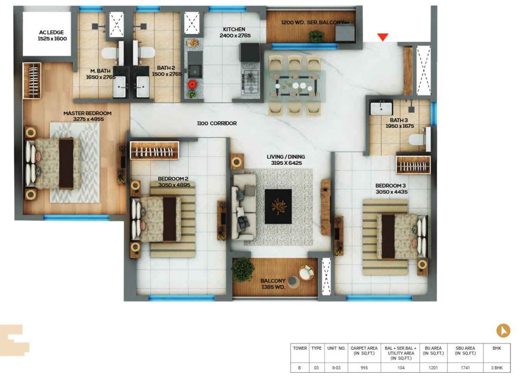 | Floor Plan | 3 | 3 | 948 sq.ft. | Price On Request |
